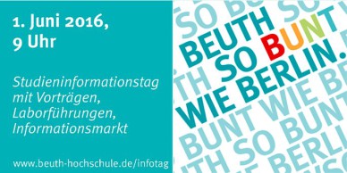 Studieninteressierte können sich am 1. Juni 2016 über das Studium an der Beuth Hochschule informieren. Im Rahmen des Studieninformationstags, gibt der Studiengang Verpackungstechnik eine Präsentation von 9:30 Uhr bis 10:30 Uhr im Raum C113 im Haus Grashof. Desweiteren befindet sich von 9 – 17 Uhr ein Infostand im Foyer des Hauses Grashof (Hochhaus) an dem es weitere Informationen / Beratung …